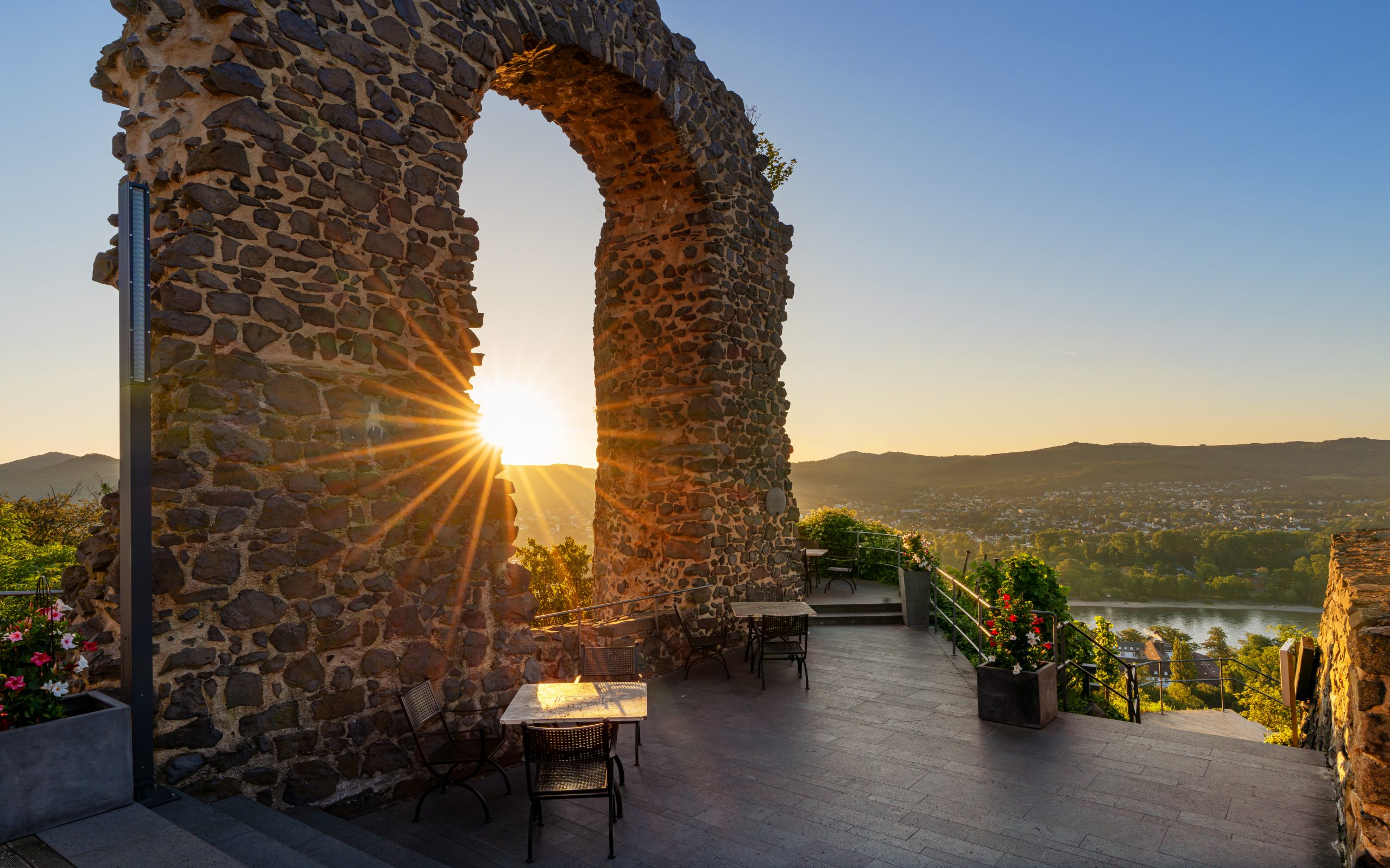 Unsere Villa liegt an der „rheinischen Riviera“ in Rolandseck oberhalb des Rheins und unterhalb des Rolandsbogens. Der Rolandsbogen steht für uns als Tor, das für unsere Familien immer offen steht, uns miteinander ins Gespräch, in Beziehung bringt. Es kann als Übergang von einer schwierigen Lebensphase in die Veränderung bringen, sich für neue Wege zu entscheiden und sich weiterzuentwickeln.